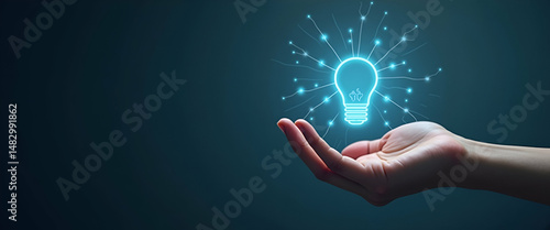Hand Showcasing Holographic Digital Sales Icon: A Minimalist Concept for Marketing Success in Photo Stock with Empty Space for Creative Use
