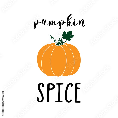 Hand sketched " Pumpkin spice " quote with pumpkin, isolated on white background. Lettering for label, sticker.