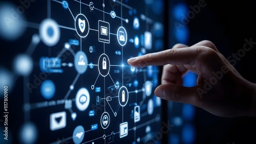 cyborg, science, machine, future, technology, touching, finger, digital, hand, futuristic, holding, robot, robotic, interface, hologram, datum, android, analysis, human, communication, connection, computer, background, blue, cybernetic, artificial, intelligence, graph, display