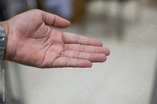 Hand using 70% alcohol gel with protected COVID-19 virus.