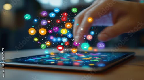 hand, tablet, screen, app, technology, digital, device, interaction, closeup, social, media, network, interface, touch, colourful, graphic, mobile, user, online, connection, modern, communication, innovation, design, display, multimedia, fun, virtual, lifestyle, information, engagement, browsing, entertainment, creative, art, concept, motion, finger, smartphone, object, table, leisure, user-friendly, usability, activity, interactive