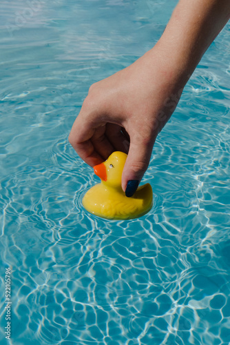 Hand with yellow rubber duck.