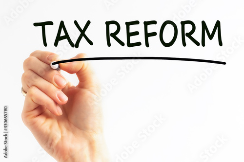 Hand writing inscription TAX REFORM with marker, concept, stock image