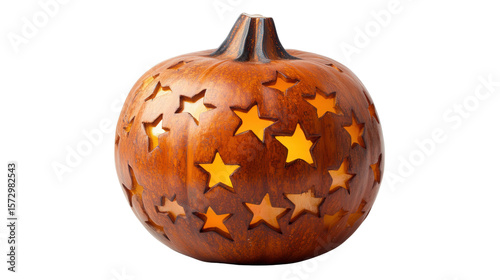 Handcrafted pumpkin lantern with carved stars background isolated on a Transparent background, PNG file.