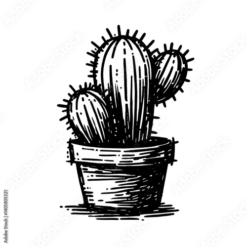 Hand-drawn Cactus Sketch on White Background