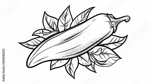 chili, pepper, food, illustration, design, drawing, vector, art, graphic, black, white, line, leaf, background, decorative, outline, style, simple, image, fresh, healthy, organic, vegetable, cooking, kitchen, culinary, seasoning, spice, tasty, delicious, hot, red, favor, spicey, element, eatery, epicure, digital, print, poster, pattern, template, clip