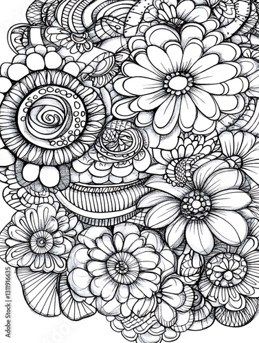 Hand-Drawn floral arrangement with intricate line work for coloring book