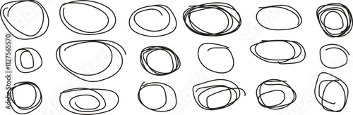 Handdrawn grunge circle doodles with charcoal pen and marker scribble style frames