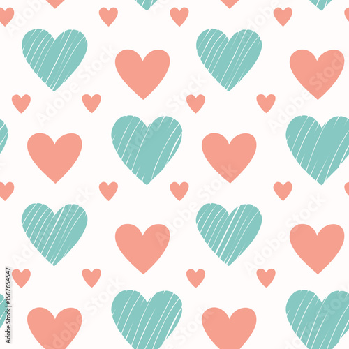 Hand-Drawn Heart Vector Pattern – Romantic Doodle Seamless Background