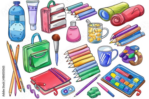 Hand-drawn illustrations of school supplies, perfect for back-to-school designs.