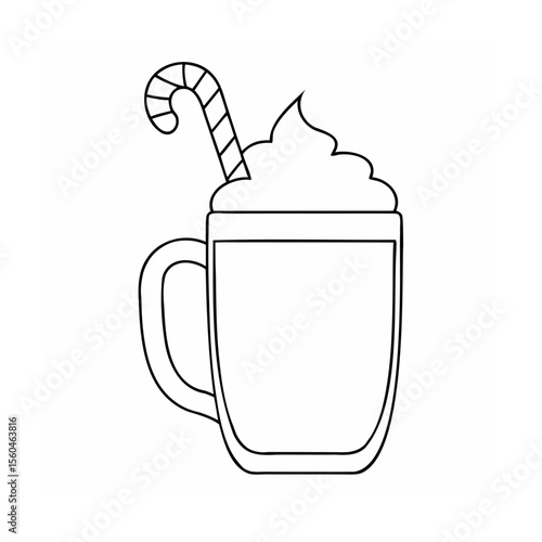 mug, cup, drink, beverage, candy, cane, whipped, cream, foam, outline, dessert, sweet, holiday, christmas, festive, food, graphic, hand-drawn, simple, isolated, design, art, line, shape, drawing, treat, celebration, winter, cocoa, hot, chocolate, vignetting