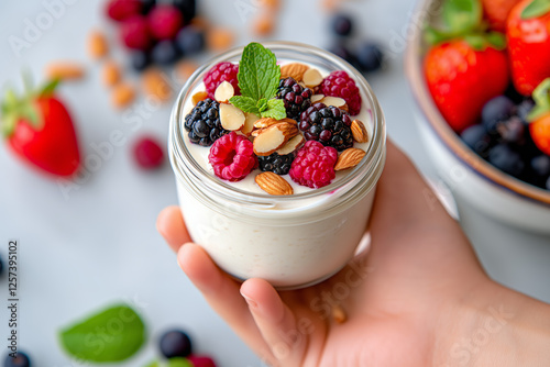 Handheld Yogurt Parfait With Fresh Berries And Almonds