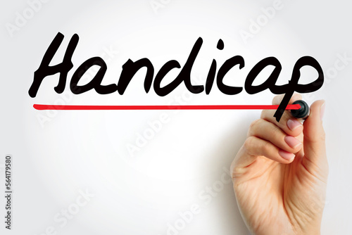 Handicap - a circumstance that makes progress or success difficult, disadvantage that makes achievement unusually difficult, text concept background