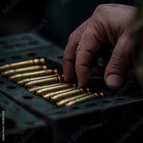 Handling ammunition military armory close-up photography industrial setting detailed focus precision and safety