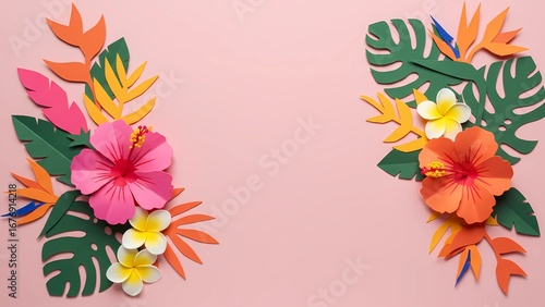 paper, flower, tropical, leaf, floral, craft, hand-made, botanical, exotic, background, decoration, design, colourful, pink, orange, green, creative, art, foliage, pattern, summer, nature, cut-out, arrangement, bloom, flower petals, vibrant, decorative, eco, texture, minimal, pastel, elegant, composition, leaf, gardening, fresh, jungle, origami