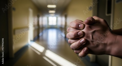 Hands Clasped in Prayer in Hospital Hallway Hope and Healing
