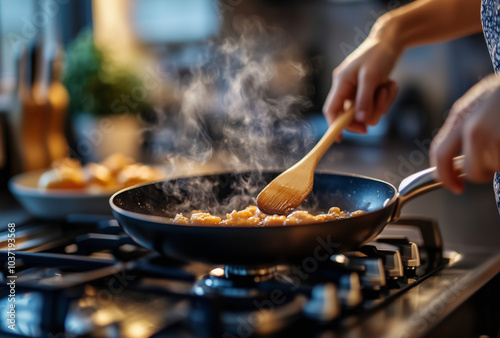 cooking, food, pan, kitchen, cook, meal, stove, frying, fried, wok, hot, fire, hand, preparation