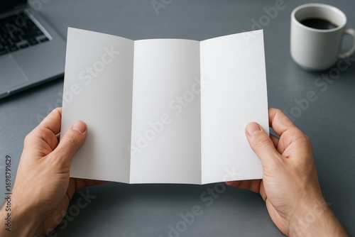 booklet, hand, blank, empty, paper, design, advertising, template, marketing, presentation, copy space, creative, workspace, laptop, hot drink, aesthetic, modern, professional, horizontal, business, document, layout, print, communication, stationery, promotional, visual, simple, elegant, stock, concept, digital, work, office equipment, environment, clean, tidy