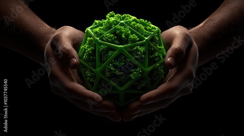 sustainability, environment, model, hand, hold, green, geometric, symbolize, environmental, care, black, background, engagement, corporate, eco, oneness, reusing, impact, design, ecology, concept, visual, climate, movement, nature, practice, habitat, synergy, lifestyle, connection, future, ethical, resource, support, solution, balance, harmony, involvement, beauty, energy