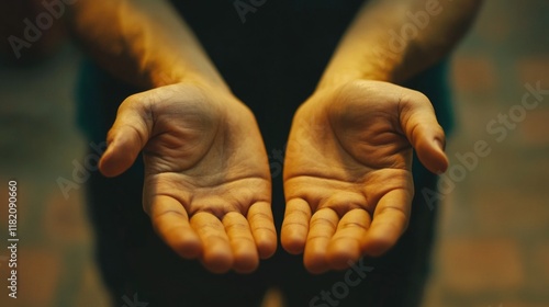 Hands in Open Gesture for Donations and Support Concept, Warm Earthy Tones, Close-Up Perspective, Focus on Textures and Details, Generosity Theme