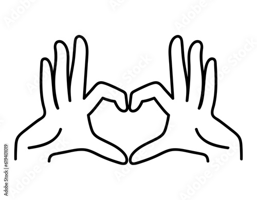Hands in shape of love doodle hand drawn line art illustration.