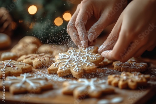 Hands making homemade holiday cookies. Generative AI
