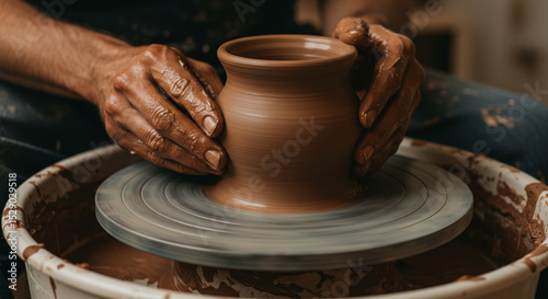 hands of a potter, creating an earthen jar on the circle,potter, clay, pottery, wheel, craft, pot, hands, art, hand, ceramic, ceramics, artist, making, handicraft,