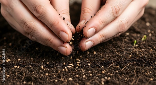 hand, planting, seed, dirtied, garden, nature, agriculture, growing, gardening, closeup, kitchen garden, flower garden