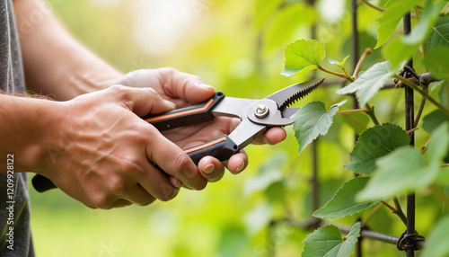 hand, pruning, outdoors, closeup, cutting, trimming, gardening, nature, precise, horticulture, summer, foliage, backyard, maintenance, vine, growth, greenery, bricolage, gardener, care, vibrant, sunny, landscaping
