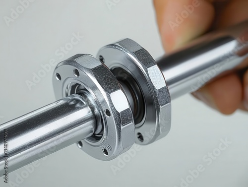 Hands skillfully using a torque wrench on a plumbing assembly, with the white background enhancing the tool?s metallic sheen.