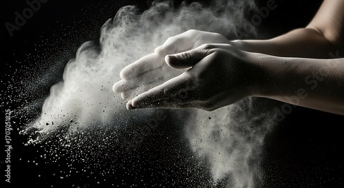 hand, flour, dust, powder, throwing, air, cloud, white, dark, background, closeup, food, cooking, baking, ingredient, preparation, texture, motion, abstract, art, photo, studio, isolated, minimal, simple, clean, elegant, powdery, scattered, particle, grain, wheat, flourish, dramatic, silhouette, artisanal, natural, fresh, organic, detail, image, photo, picture, visual, design, creative, modern, contemporary