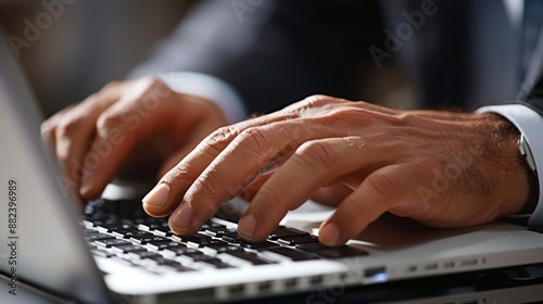 hand, typing, laptop, keyboard, computer, technology, work, business, office, digital, device, finger, desk, screen, cyberspace, web, electronic mail, software, datum, information, communication, network, wireless, electronic, contraption, notebook, modern, efficient, productivity, task, sharpened, concentration, professional, man, closeup, detail, light, shadow, grey, silver