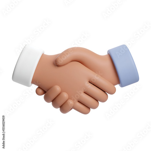 Handshake: A representation of agreement and collaboration. Two hands clasped firmly, rendered in a soft, 3D style, highlighting the concepts of cooperation and successful partnerships.