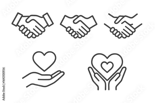 Handshakes and heart symbols representing cooperation and friendship during a community event in a city park