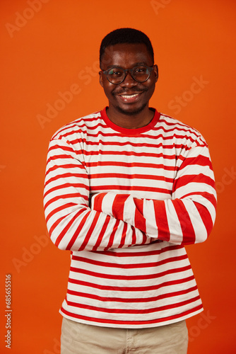 person, male, man, studio, adult, arm, cool, portrait, black, confident, smile, happy, isolated, young, background, posing, positive, looking, african american, arms crossed, standing, photogenic, gesture, folded, fashionable, success, orange, attractive, cheerful, crossed, colours, dark, laughing, joyful, charming, young men, arms crossed, young adult, relax, enjoy, front, fun