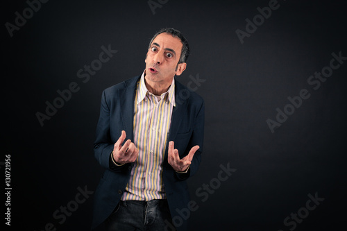 adult, anger, attitude, black, black background, casual attire, conflict, disappointment, displeased, frustration, furious, grey, grey hair, irritation, isolated, jean, male, mature adult, man, one man only, one person, people, serious, staring, studio shot, sulk, sullen, toughness, arab, caucasian, hate, hatred, portrait