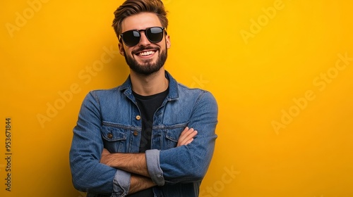 adult, arm, arm, background, beard, business, casual attire, caucasian, cheerful, confidence, confident, cool, crossed, expression, fashion, friendly, front, guy, photogenic, happiness, happy, hipster, hispanic, isolated, joy, laughing, lifestyle, looking, man, model, natural, person, piercing, pink, portrait, pose, positive, smart, smile, success, successful, sunglasses, tattoo, teeth, trust, young
