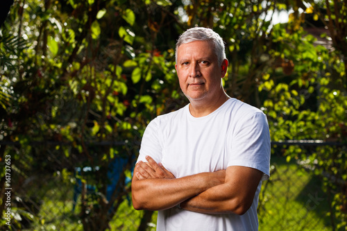 adult, arms crossed, attractive, beauty, brown eyes, casual attire, caucasian, 50s, good-looking, grey hair, green background, guy, photogenic, happy, hispanic, latin america, latino, lifestyle, male, man, model, outdoors, people, person, portrait, real people, retirement, sexy, smile, spanish, unshaved