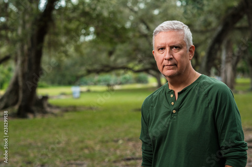 man, adult, attractive, beauty, brown eyes, casual attire, caucasian, fashion, 50s, good-looking, grey hair, green background, guy, photogenic, happy, hispanic, latin america, latino, lifestyle, male, mature adult, model, oak tree, outdoors, park, people, person, portrait, real people, retirement, senior, sexy, spanish, style, t-shirt