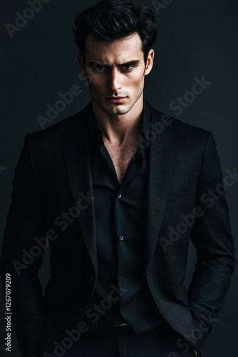 photogenic, man, suit, black, background, stylish, formal, portrait, fashion, elegance, business, elegant, model, attractive, confident, serious