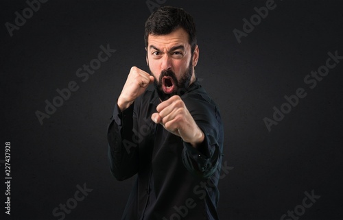 adult, aggressive, angry, attractive, background, beard, black, casual attire, caucasian, combat, cool, dark, defense, exercise, fashion, fight, fighter, furious, guy, photogenic, healthy, hispanic, hit, latin, man, martial, man, model, people, person, portrait, punch, slim, style, young