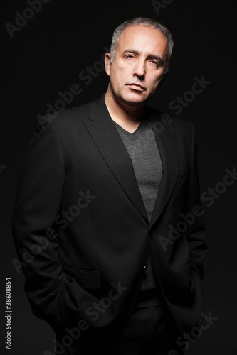 adult, aged, arm, background, black, business, businessman, casual attire, caucasian, confident, dark, fresh, grey, hand, photogenic, isolated, life, lifestyle, look, male, man, mature, middle, modern, natural, 1, people, person, portrait, satisfied, senior, serious, smart, standing, studio, white
