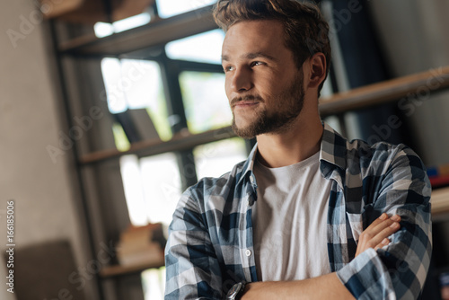 Handsome young man being deep in thoughts