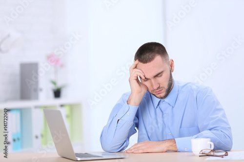 ache, background, blood pressure, care, caucasian, clothes, computer, cup, depression, drink, emotional, goggles, hand, photogenic, head, cephalalgia, health, home, bruised, disease, interior, laptop, male, man, medic, medicals, medicine, migraine, nervous, notebook, office, pain, paper, person, problem, sitting, stress, suffering, symptom, table, sleepy, trouble, unhappy, working, young
