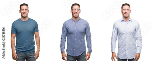 Handsome young man wearing different outfits winking looking at the camera with sexy expression, cheerful and happy face.