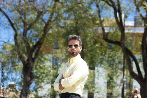 1, photogenic, young, man, beard, sunglasses, arm, folded, confident, garden, seville, latin, tree, background, spain, hispanic, travel, white, success, guy, portrait, satisfaction, caucasian, casual attire, smart, person, business, carefree, cheer, standing, joyful, businessman, businessperson, friendly, proud, pleasure, 1, smiling, smile, fresh, glad, happy, arm, shirt, people, mature, isolated, male, cheerful