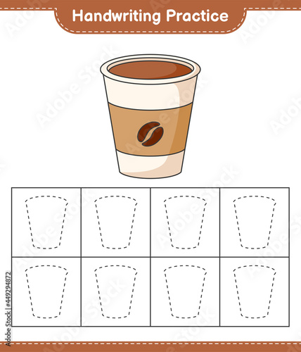 Handwriting practice. Tracing lines of Coffee Cup. Educational children game, printable worksheet, vector illustration