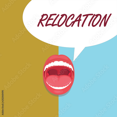 Handwriting text Relocation. Concept meaning Action of moving to a new place and establishing home or business.