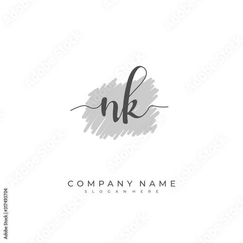 Handwritten initial letter N K NK for identity and logo. Vector logo template with handwriting and signature style.