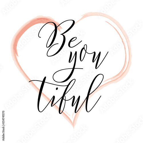 Handwritten lettering "Be You Tiful". Love, romantic concept. Trendy design. Useful for t-shirt, poster, flyer.